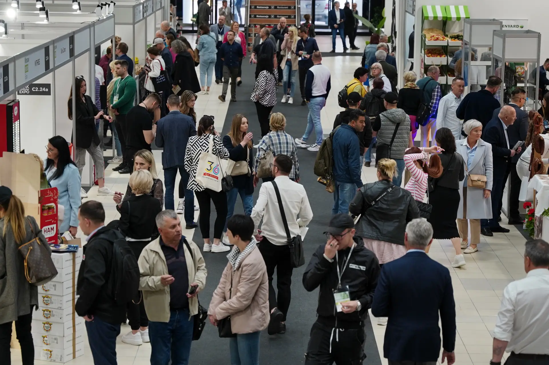 У межах Warsaw Food Expo 2025 ядром стала експозиція на 25 000 м². Зони були логічно структуровані, аби відвідувач міг швидко «прочитати» карту ринку: харчові продукти, органіка, ремісничі стенди, VEGE-коридори, блок виробничих технологій та інгредієнтів, а також кластер пакування. Частина учасників була згрупована за національними павільйонами/об’єднаннями, інші — як самостійні компанії з яскравими дегустаційними зонами.