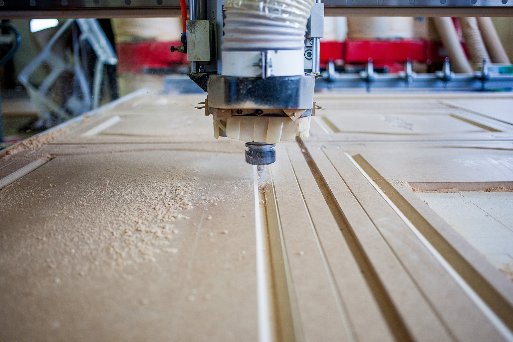 – Станки ЧПУ з автоматичною заміною інструменту та вакуумними столами — для серійної переробки МДФ, ДСП, масиву.